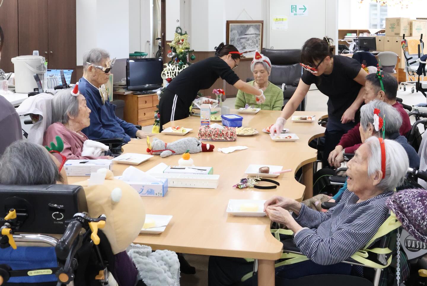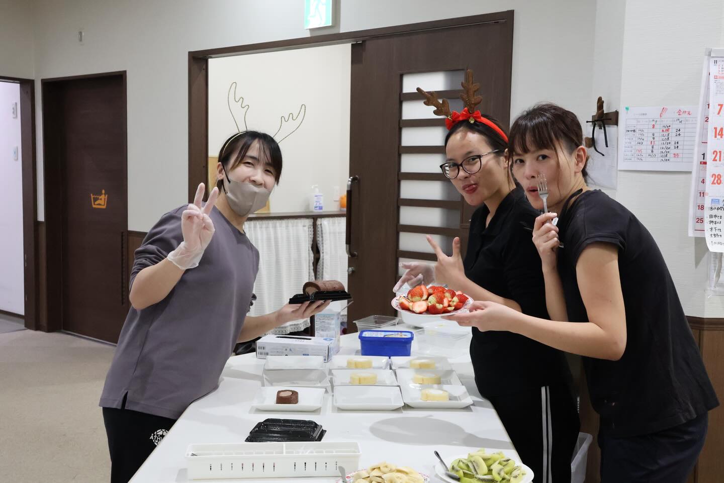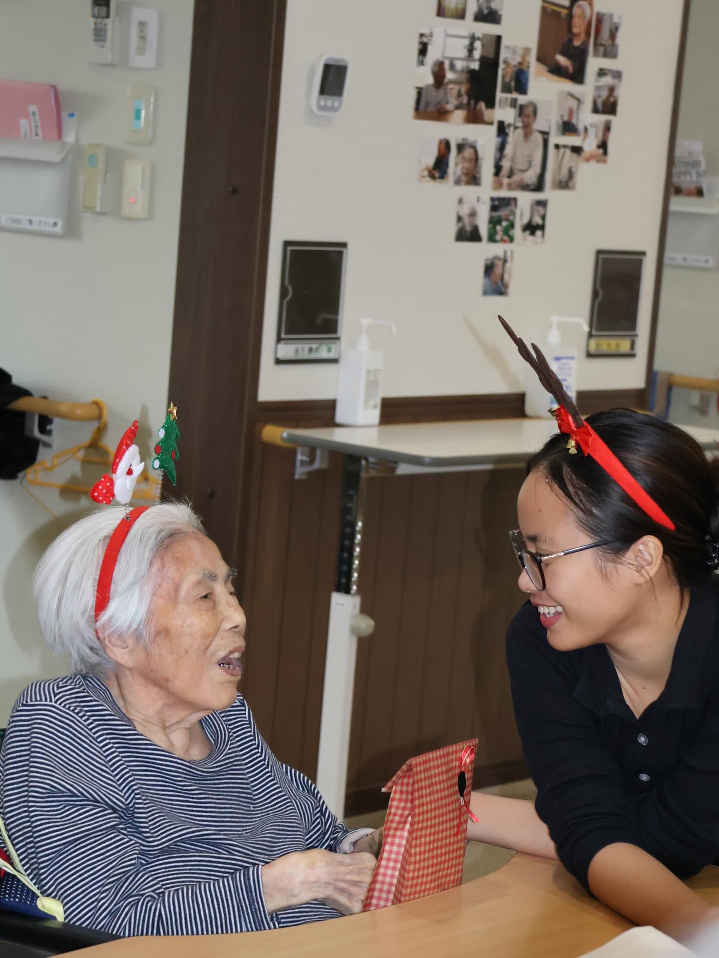クリスマスツリーを飾り、ケーキを作り、みんなで笑い合いながら過ごした時間。準備の段階から自然と笑顔が広がり、入居者さんと楽しそうに話してました。